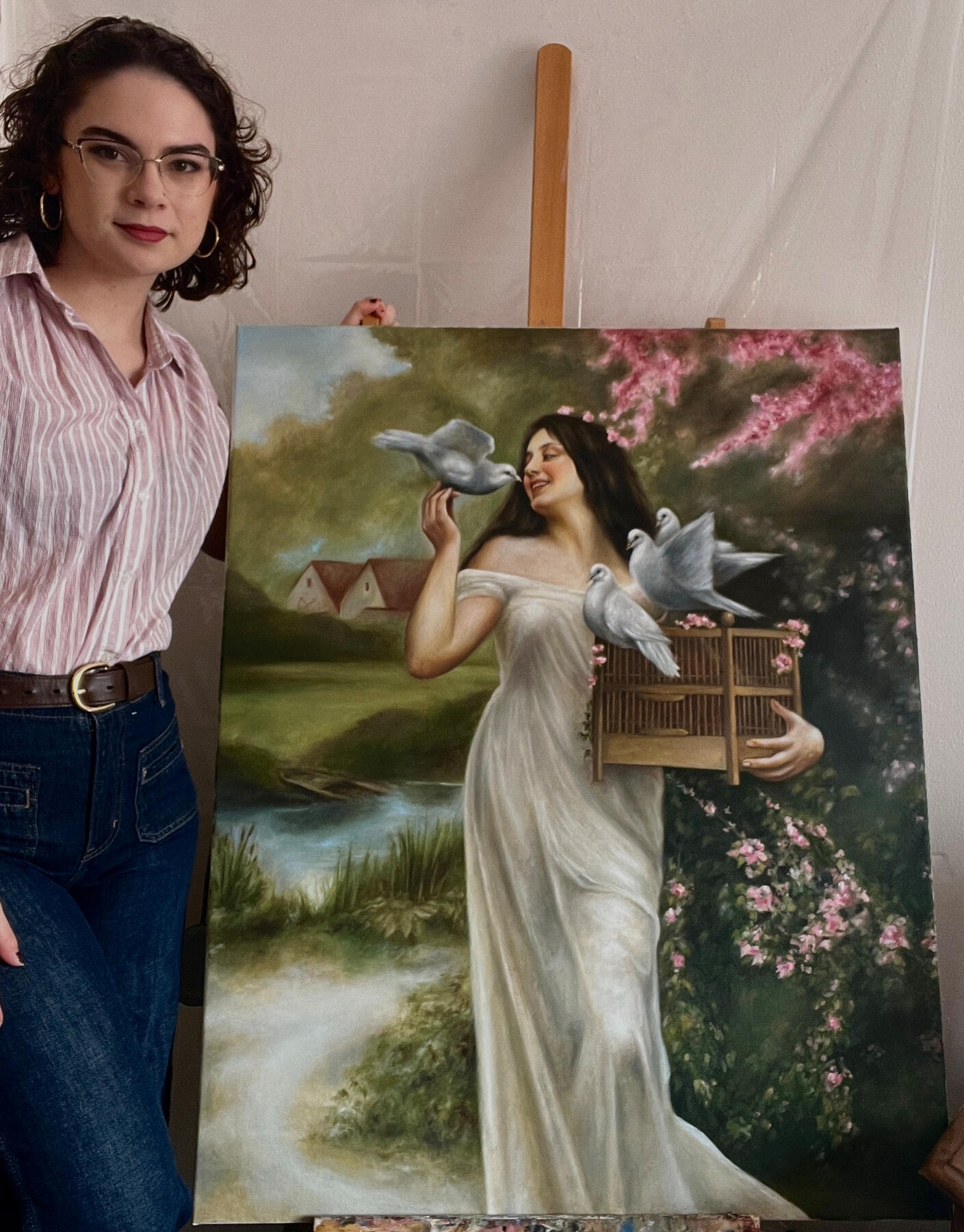 Olivia is driven by an intense passion for the values of classical art, including discipline, dedication, and exceptional technical skill. Her work is inspired by the French Rococo and Academic traditions, particularly artists such as William-Adolphe Bouguereau.
